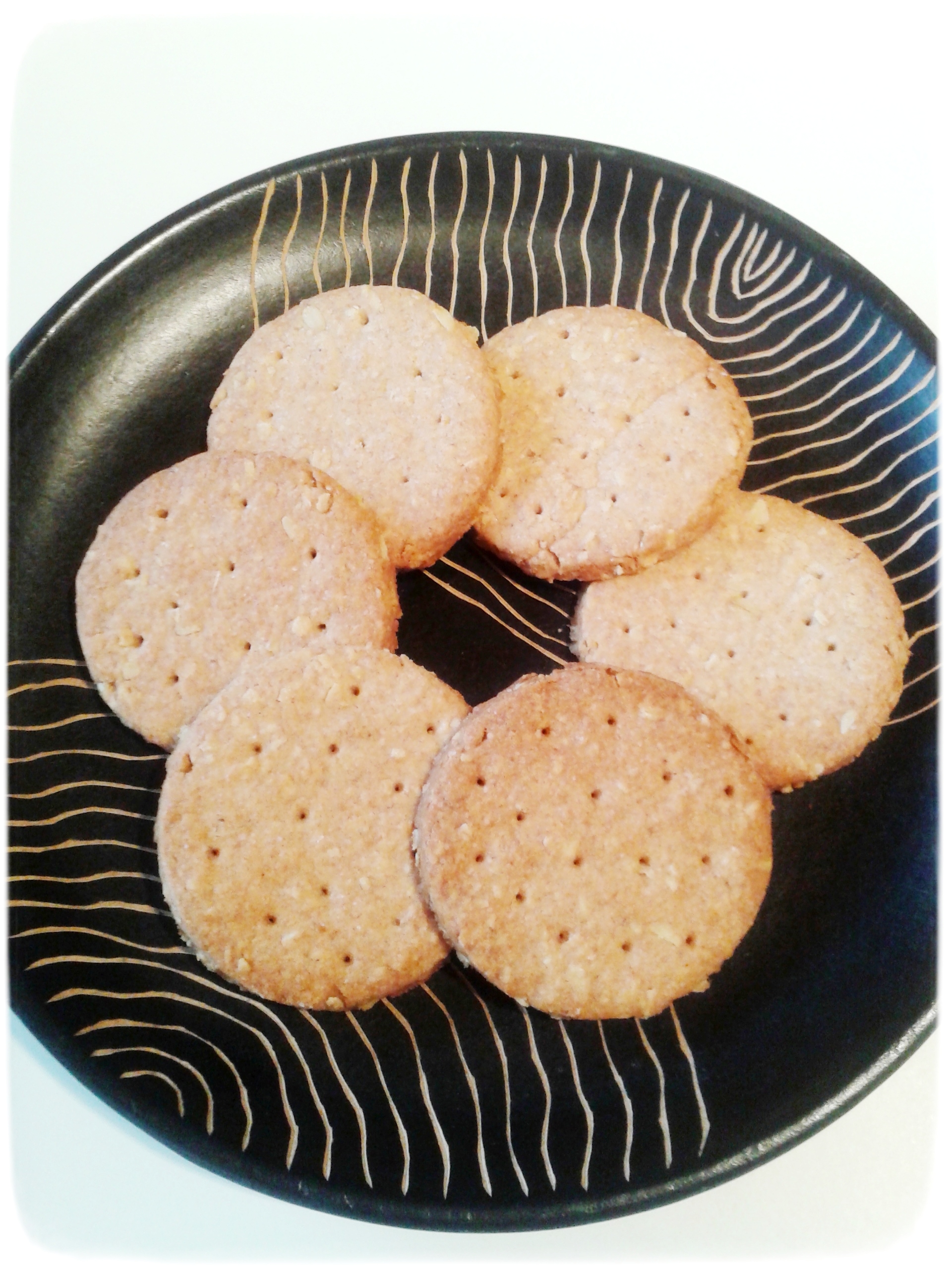Tritare l’avena con un minipimer. Mescolare tutti gli ingredienti con le mani fino ad ottenere una pasta frolla e lasciar riposare per 1 ora in frigorifero. Stendere la pasta frolla a 4/5mm e tagliarla biscotti rotondi. Con l’aiuto di uno stuzzicadenti perforare la superficie più volte. Cucinare i biscotti in forno ventilato e preriscaldato a 170°C per 10/12 minuti. Fate raffreddare i biscotti sulla teglia. Una volta freddi si possono conservare fino a una settimana in una scatola per biscotti.
