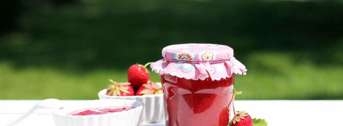 Con la ayuda de una batidora cortar las fresas en una purea muy fina. Verter la purea en una olla muy grande, agregar el azúcar, el azúcar de vainilla y el zumo de 2 limones (depende de la madurez de las fresas). Hervir durante 25 minutos y remover de vez en cuando. Mientras tanto limpiar los botes de cristal para mermelada y desinfectar con alcohol. Ahora disolver el agar agar en el ron miel y agregar a la mermelada. Cocinar 5 minutos más. Poner una cuchara de mermelada en un plato y dejar enfriar para comprobar la justa consistencia (normalmente pongo el plato 2 minutos antes en el congelador). Si la mermelada tiene la consistencia deseada verterla en los botes de cristal y cerrar bien. Poner los botes de cristal boca abajo y dejamos enfriar la mermelada. Una vez fría se puede conservar en un lugar seco y fresco. La mermelada es perfecta, tiene un sabor a fresa único, nada a que ver con las mermeladas compradas. Además la cocción es tan rápida que el fruto no pierde sus propiedades y mantiene vivo el color.