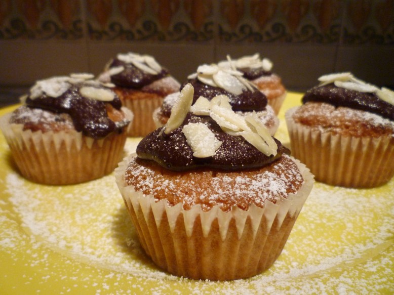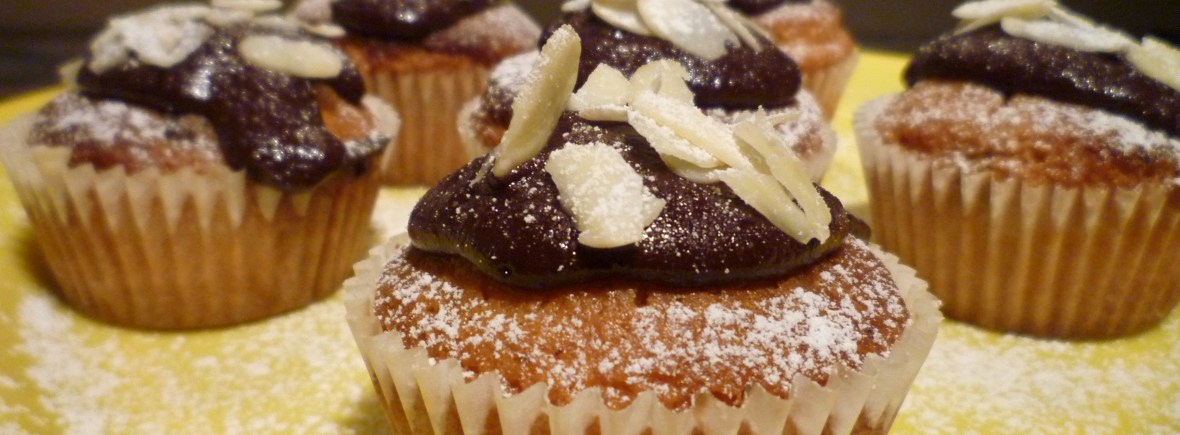 Mezclar en un bol azúcar, mantequilla, leche, huevo y nutella. Al final añadir la harina mezclada con la levadura en polvo y las avellanas o almendras. Poner en los moldes de muffins y cocinar en horno precalentado a 180°C durante 20 minutos. Una vez frías, se pueden decorar con chocolate, avellanas o almendras y azúcar glas.