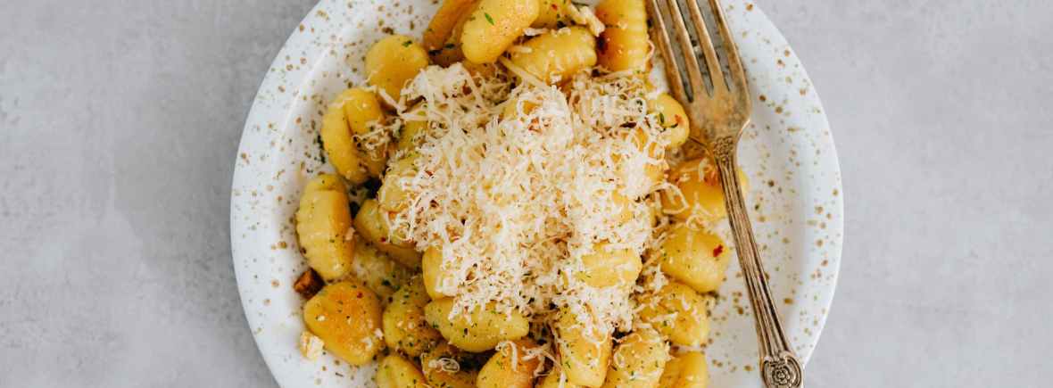 Quitar la piel de las papas y de la calabaza y cortar en trozos. Cocinar las verduras a vapor y dejarlas enfriar. Una vez frías, pasarlas por el prensa papas. Mezclar las verduras con el huevo y la harina hasta obtener una masa lisa (puede ser que se necesitan algunas cucharas más de harina) y ajustar de sal. Ahora formamos cilindros con la masa (ancho 1cm – 2cm) y cortamos nuestros gnocchis de 1,5cm – 2cm. Con ayuda de un tenedor marcamos la superficie de los gnocchis. Para la salsa, cortamos la cebolla muy fina y freír algunos minutos en una sartén con un poco de aceite de oliva. Cortar la salchicha en trocitos pequeños y freír con la cebolla. Desglasar con un poco de vino tinto y añadir todo el resto de los ingredientes y cocinar durante algunos minutos. Si la salsa se queda densa, agregar un poco de agua. Ahora cocinar los gnocchis en agua salada durante 3/5 minutos (depende del tamaño), escurrirlas y saltearlas en la salsa. Servimos los gnocchis con un poco de queso rallado. Consejo: los gnocchis crudos se pueden poner en una bandeja y dejar congelar en el congelador. Una vez congeladas se pueden ponerlas en una bolsa de plástico y dejarlas hasta 1 mes en el congelador. Se pueden cocinar directamente desde el congelador al agua caliente (tiempo de cocción 2 minutos más de lo normal).