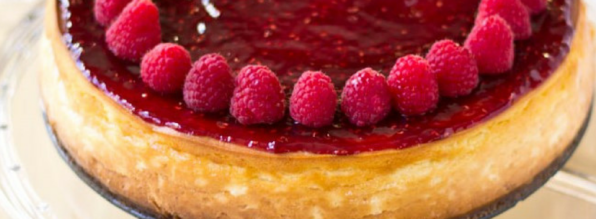 Para la crema, mezclar todos los ingredientes en un bol y verter la crema de queso encima de la base realizada con galletas. Cocinar la cheesecake en el horno precalentado y ventilado a 170°C durante 30 minutos. Una vez templada, se puede cubrir la tarta con la mermelada templada y mezclada con Gran Marnier y decorar con frambuesas frescas. Dejar enfriar en la nevera durante 6 horas.
