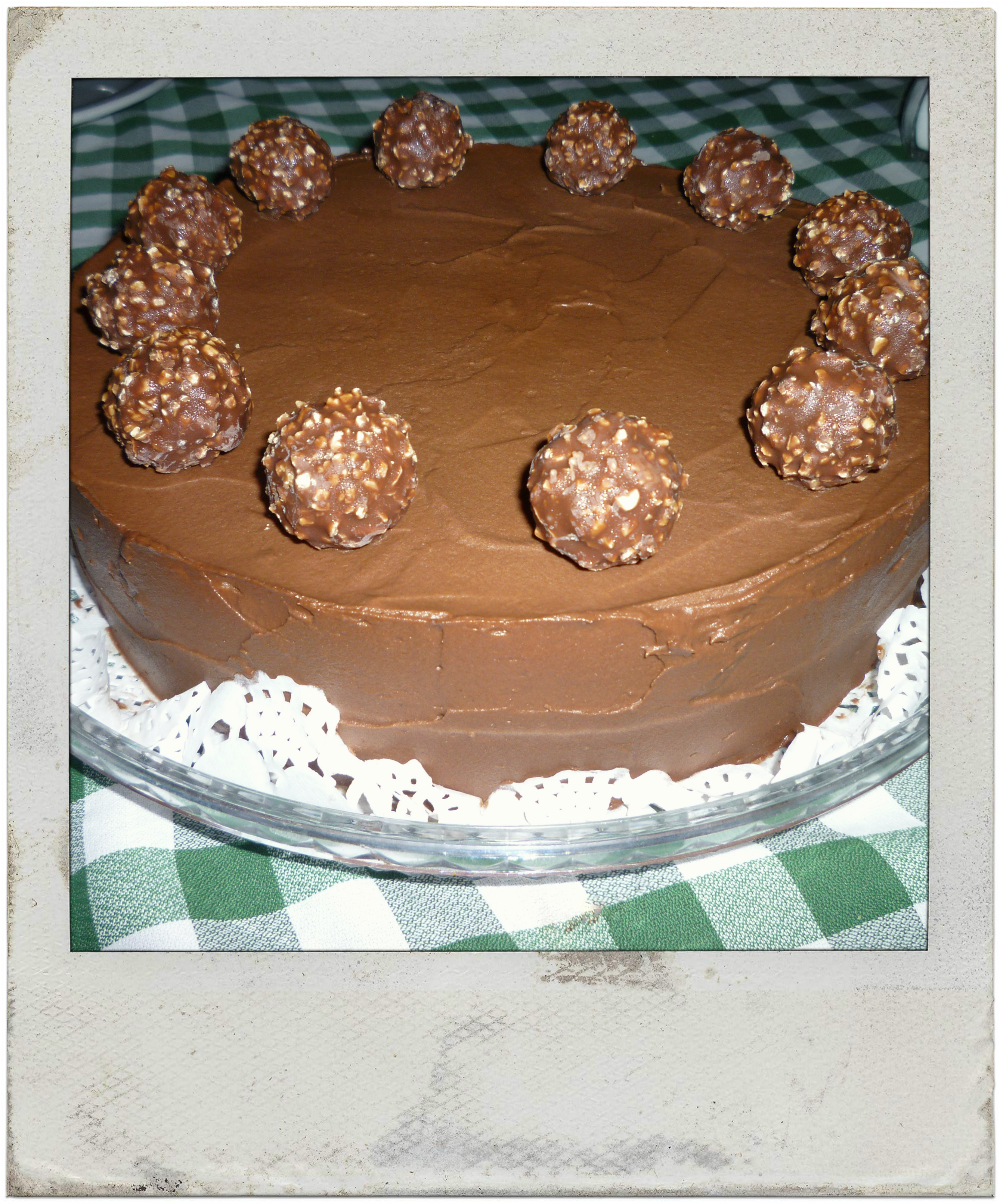 Para el bizcocho mezclamos en un bol los huevos, el azúcar, la vainilla y la cascara de limón durante unos 10 minutos, hasta obtener una crema blanca y espumosa. Ahora se añade la harina y la levadura. Hornear en un molde de 26cm en horno precalentado y ventilado a 180°C durante 10 minutos. Una vez fría, si corta el bizcocho en tres capas y se moja cada capa con Baileys. Para la crema mezclamos el mascarpone con la leche condensada durante 2 minutos, y después se añade la nutella. Preparar la gelatina según las instrucciones del paquete y mezclar con la crema. Al final añadir la nata montada y mezclar todo suavemente. Ahora se puede componer la tarta, empezando con una capa de bizcocho, luego una capa de crema, otra capa de bizcocho y otra capa de crema. Cerrar la tarta con una capa de bizcocho y dejar enfriar en la nevera durante 6 horas. Cubrir la tarta con el resto de la crema y decorar con las bolas e Ferrero Rocher.