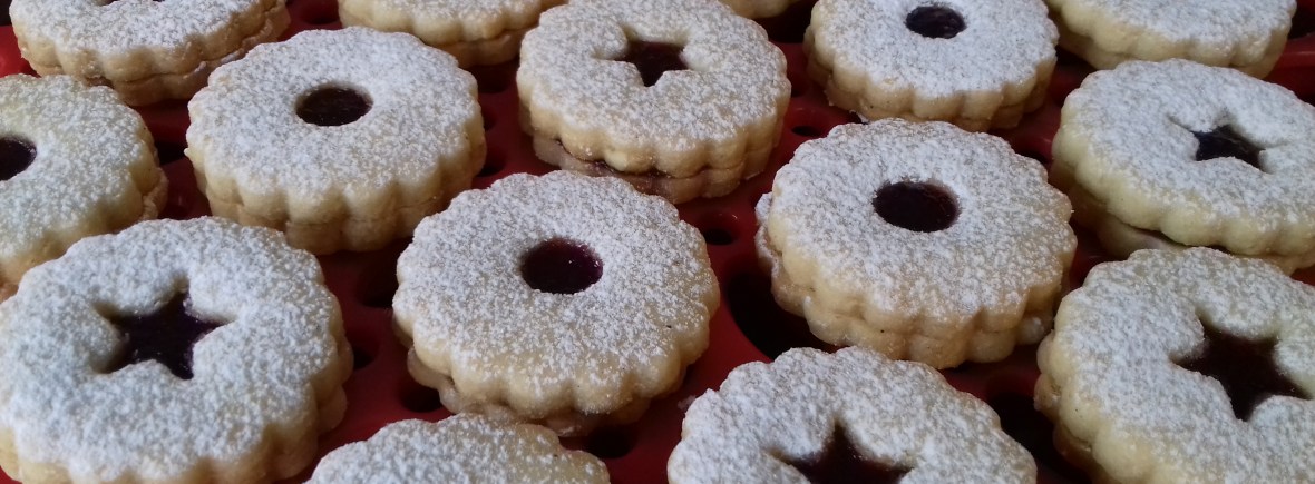 Para componer las galletas Linzer, coger una galleta, poner una cucharadita de mermelada templada y cerrar con una galleta con hueco. Espolvorear con azúcar glas y conservar en un bote hermético.